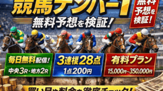 競馬ナンバー1の無料予想を管理人が実際に登録・確認。毎日配信(中央3R・地方2R)、3連複28点×200円の買い目仕様、配信実績、利用時の注意点を事実ベースで整理しています。